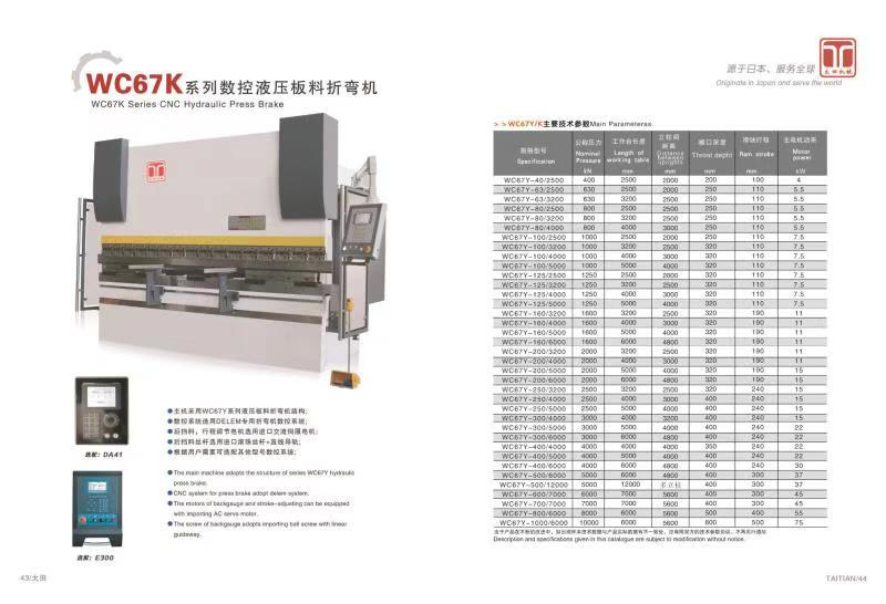產(chǎn)品介紹:結(jié)構(gòu)特點(diǎn): 一、整機(jī)結(jié)構(gòu) 機(jī)器采用整機(jī)焊接結(jié)構(gòu),機(jī)架由左右墻板、工作臺、油箱、撐擋、同步軸及滑塊等組成。 二. 技術(shù)與工藝 1、集成式液壓控制系統(tǒng),結(jié)構(gòu)緊湊,減少了管路連接,提高了系統(tǒng)的可靠性和易維修性。 2、采用扭軸同步,在滑塊兩端裝有2個同步擺臂,,使滑塊動作始終與工作臺保持平行, 工作時抗偏載能力強(qiáng)。油缸下限行程機(jī)械檔塊定位,連續(xù)工作折彎角度不漂移。上模加裝撓度補(bǔ)償機(jī)構(gòu),折板精度高。 3、擋